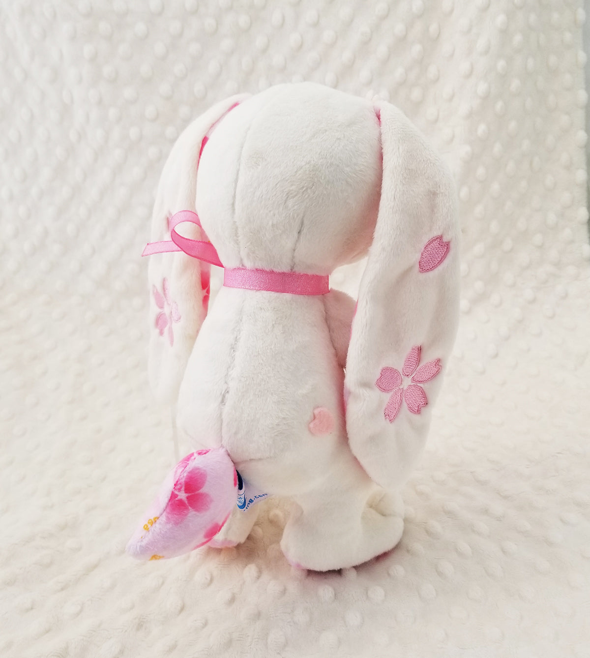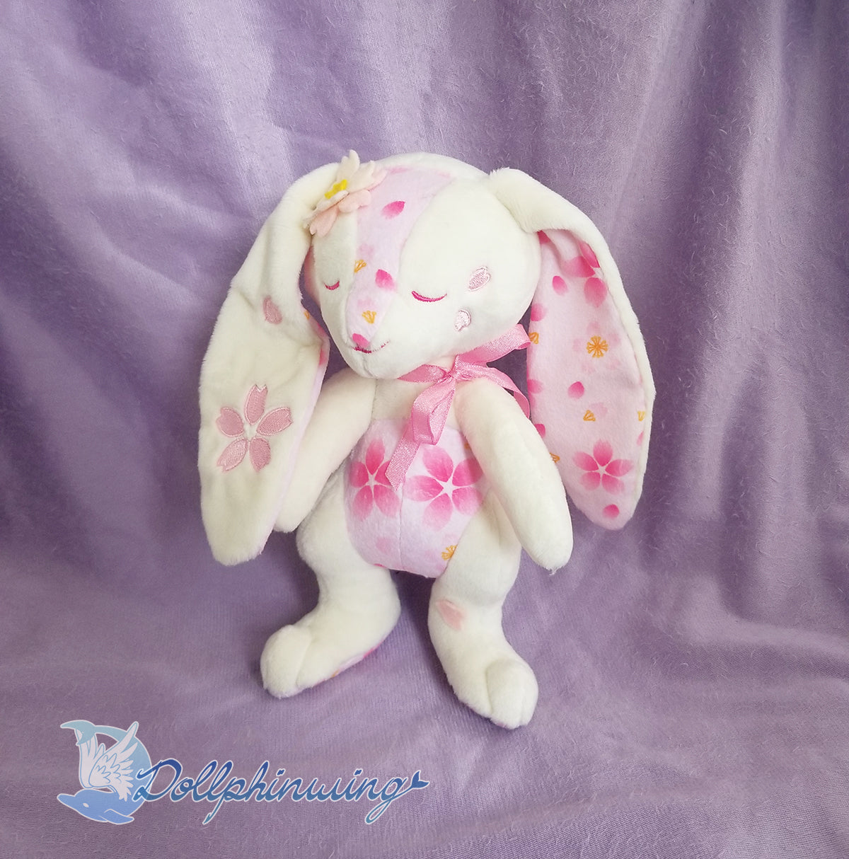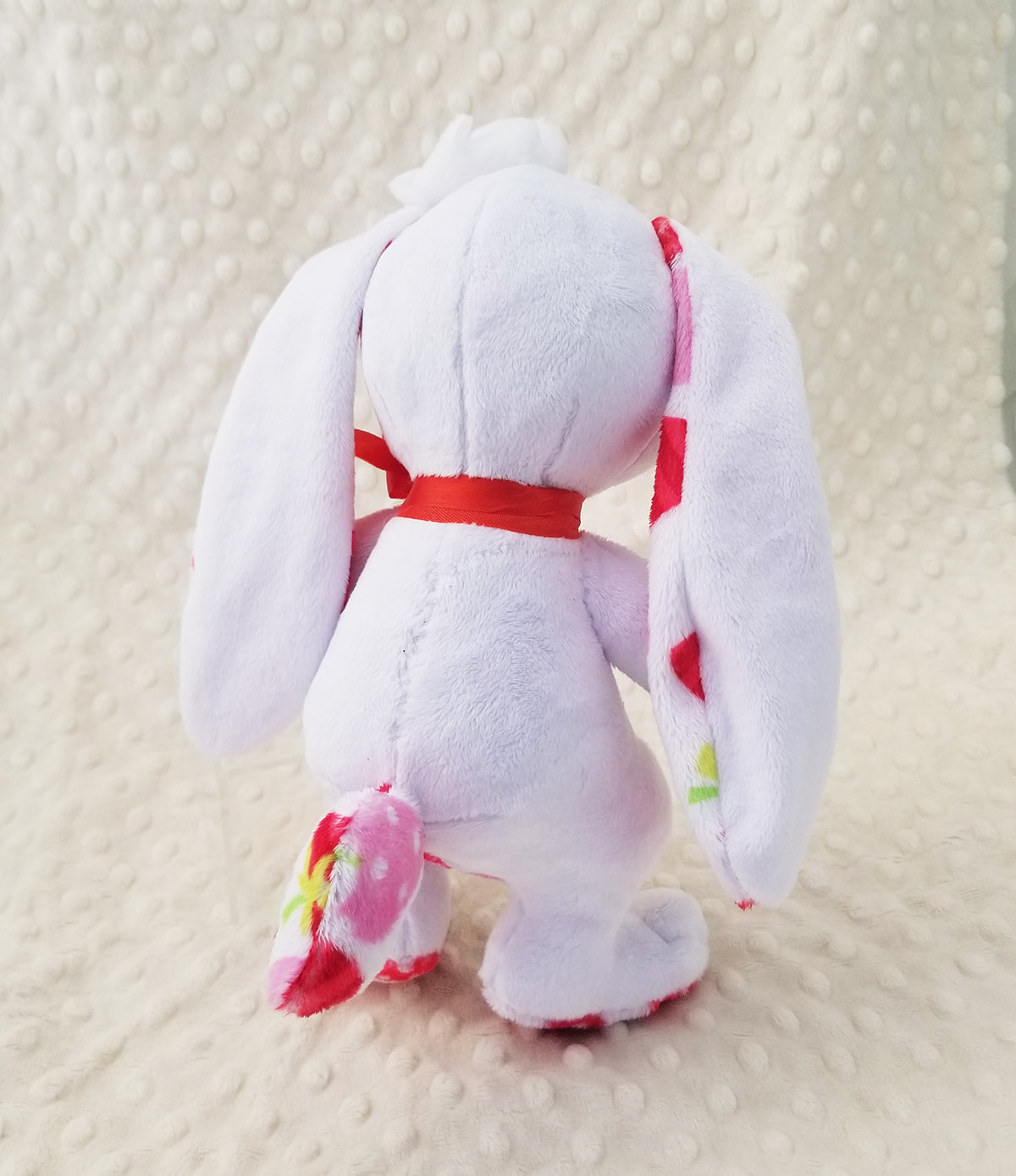 Standing at 9.5" tall with floppy ears and a ribbon tied around each! The ribbon can also be removed as it isn't glued or sewn down.