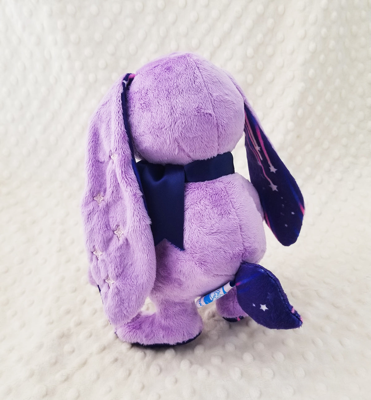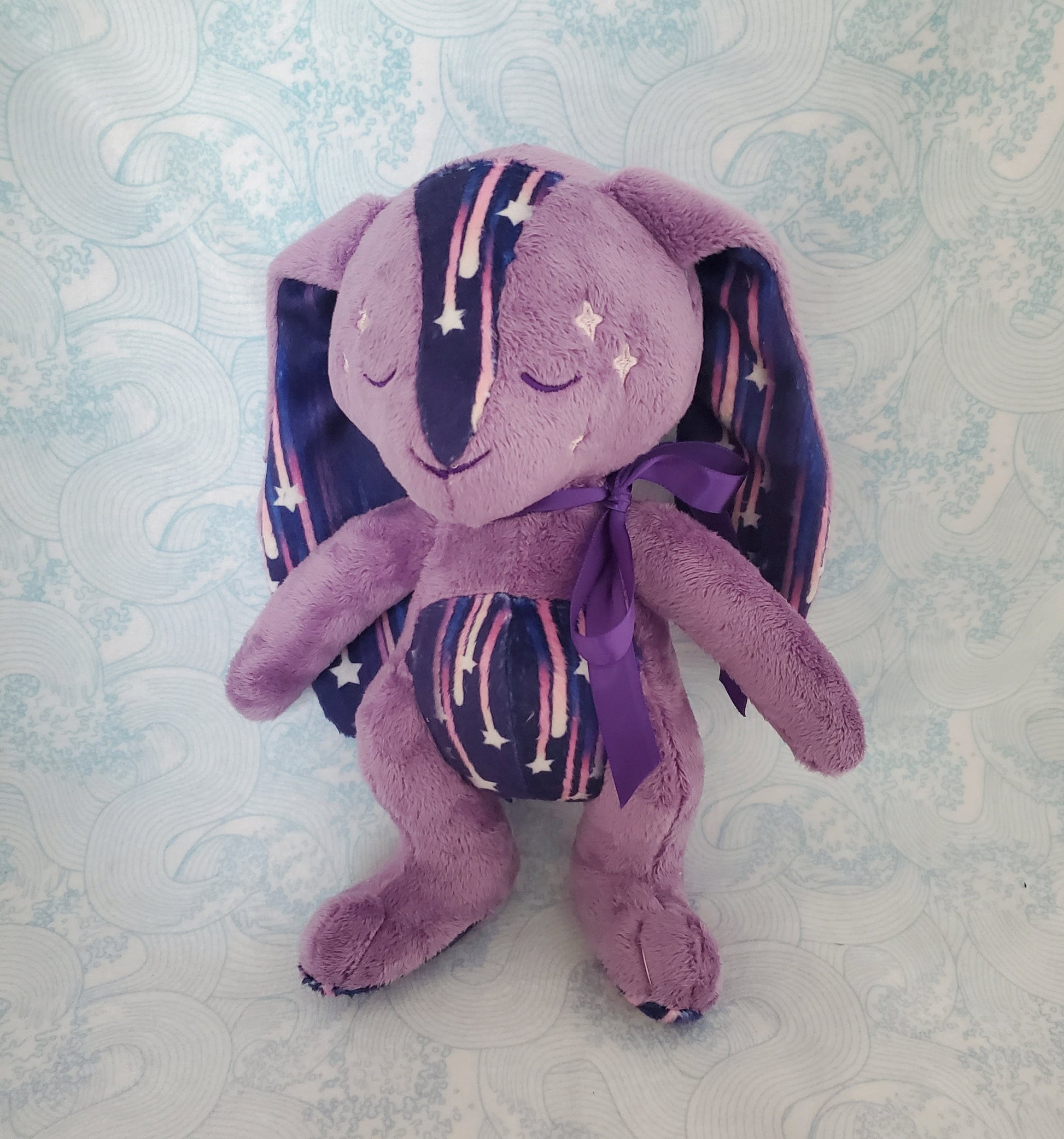 Made with soft minky fabric and stuffed with polyester fiber. Machine embroidered details.